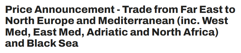 日前,地中海航运宣布,自2026年1月1日起(直至另行通知,但不超过2026年1月14日),从所有远东港口(包括但不限于日本、韩国和东南亚的港口)至北欧及地中海