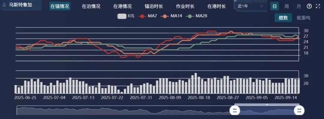 提供指定港口组在锚数量、在泊数量、在港数量、锚泊时长、作业时长、在港时长、平均等泊、平均作业、平均停留的TOP20排行和指定港口的船舶列表、港口在锚数量/在泊数量/在港数量/锚泊时长/作业时长折线图。通过分析在锚数量、在泊数量和在港数量,港口管理机构可以了解港口的船舶流量和负荷情况。这有助于对港口资源进行规划和管理,包括码头和泊位的分配、装卸设备的调度和人力资源的安排。通过分析锚泊时长和作业时长,可以评估港口的运营效率。较短的锚泊时长和作业时长通常意味着港口能够高效地完成船舶停泊和货物装卸作业,从而提高运营效率和港口吞吐能力。