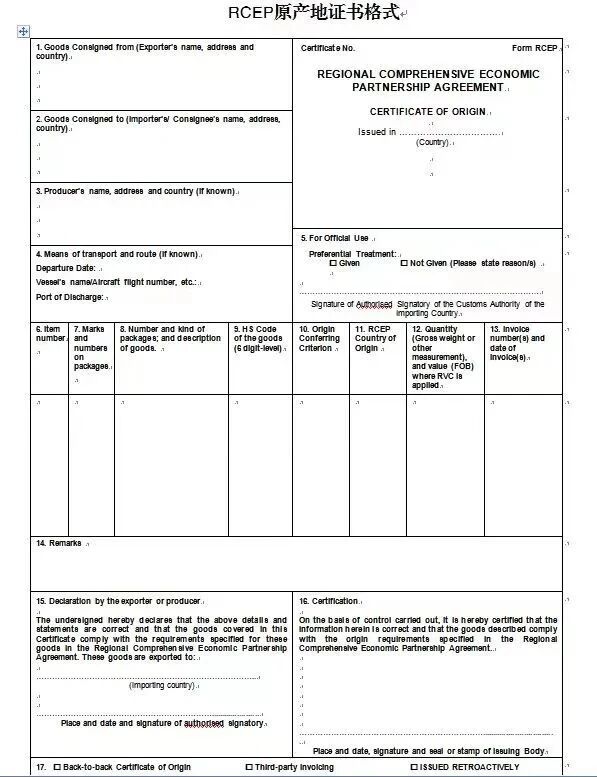 (3)补发证书期限:中国-东盟自贸协定规定12个月内可以补发;中国-澳大利亚自贸协定规定货物装运起一年内可补发;亚太贸易协定无补发。