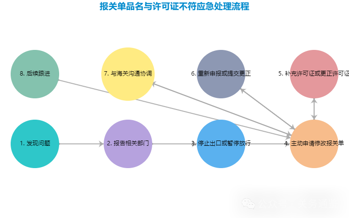 以下流程图直观地展示了企业在发现报关单品名与许可证不符时应采取的应急处理步骤: