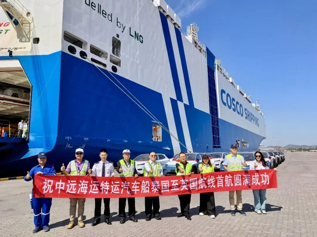 日前,中远海运特运旗下远海汽车船公司的“永乐口”轮,在泰国林查班港完成200台长安S05MAX电动车的装船作业,标志着远海汽车船&ldq