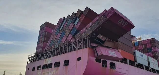 突发!ONE集装箱船遭遇巨浪,近50个集装箱坠海