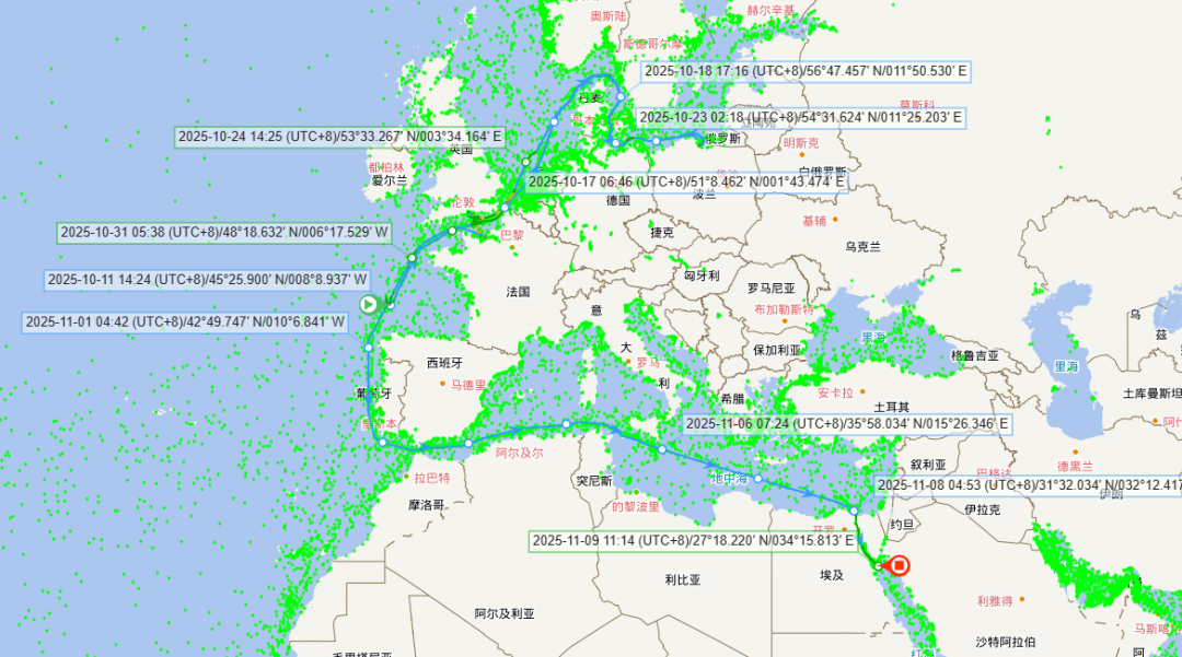 与此同时,达飞轮船旗下另一艘船舶也计划试航红海通道。若此次航行成功,达飞在一个月内经由红海的超大型集装箱船将增至三艘。航运分析机构Linerlytica指出,运力为16022TEU的集装箱船“CMA CGM JULES VERNE”号在2025年11月2日靠泊新加坡后,正驶向红海海域。