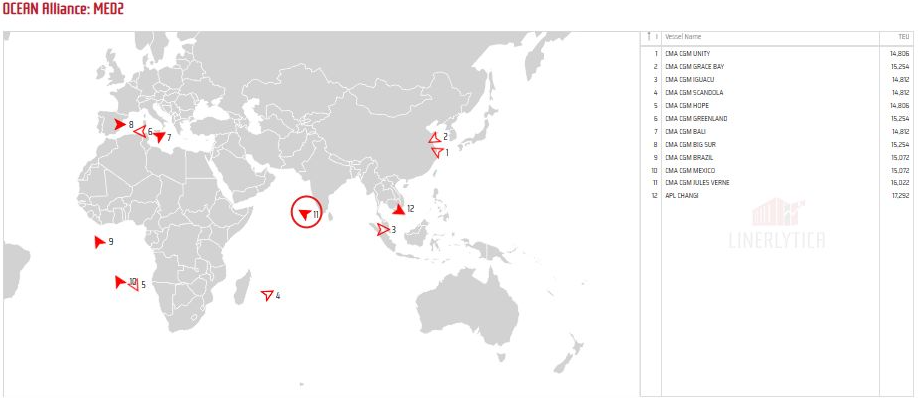 该船已于本周开启经苏伊士运河的往返航程。若按计划完成后续航程,这标志着自2024年1月以来,海洋联盟MED2航线首次有船舶重返苏伊士航线,也标志着该联盟第二条远东-地中海航线有望重启这条通道。该轮计划于2025年11月14日西行通过苏伊士运河,并于2025年12月13日东行返回,与此前常规的绕行好望角航线相比可节省两周时间。本次航程还临时增靠贝鲁特港。