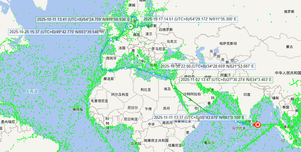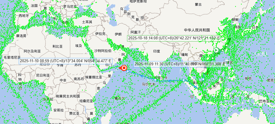值得注意的是,“CMA CGM BENJAMIN FRANKLIN”号在驶离苏伊士湾后经历了为期六天的信号中断,之后于11月7日亚丁湾入口索科特拉岛附近重新开启AIS信号。达飞旗下其他船舶经过该区域时也曾出现类似信号中断,《劳氏日报》认为此举可能是为降低遭胡塞武装袭击的风险。