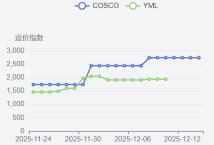 有分析称,11月下旬到12月中旬有圣诞备货需求,目前货量有所增加,但当前航线供需基本面已转弱,整体难再出现大幅上涨行情。