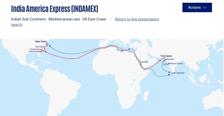 该航线覆盖斯里兰卡、印度西海岸,经停沙特阿拉伯吉达港后,最终抵达美国东海岸港口。