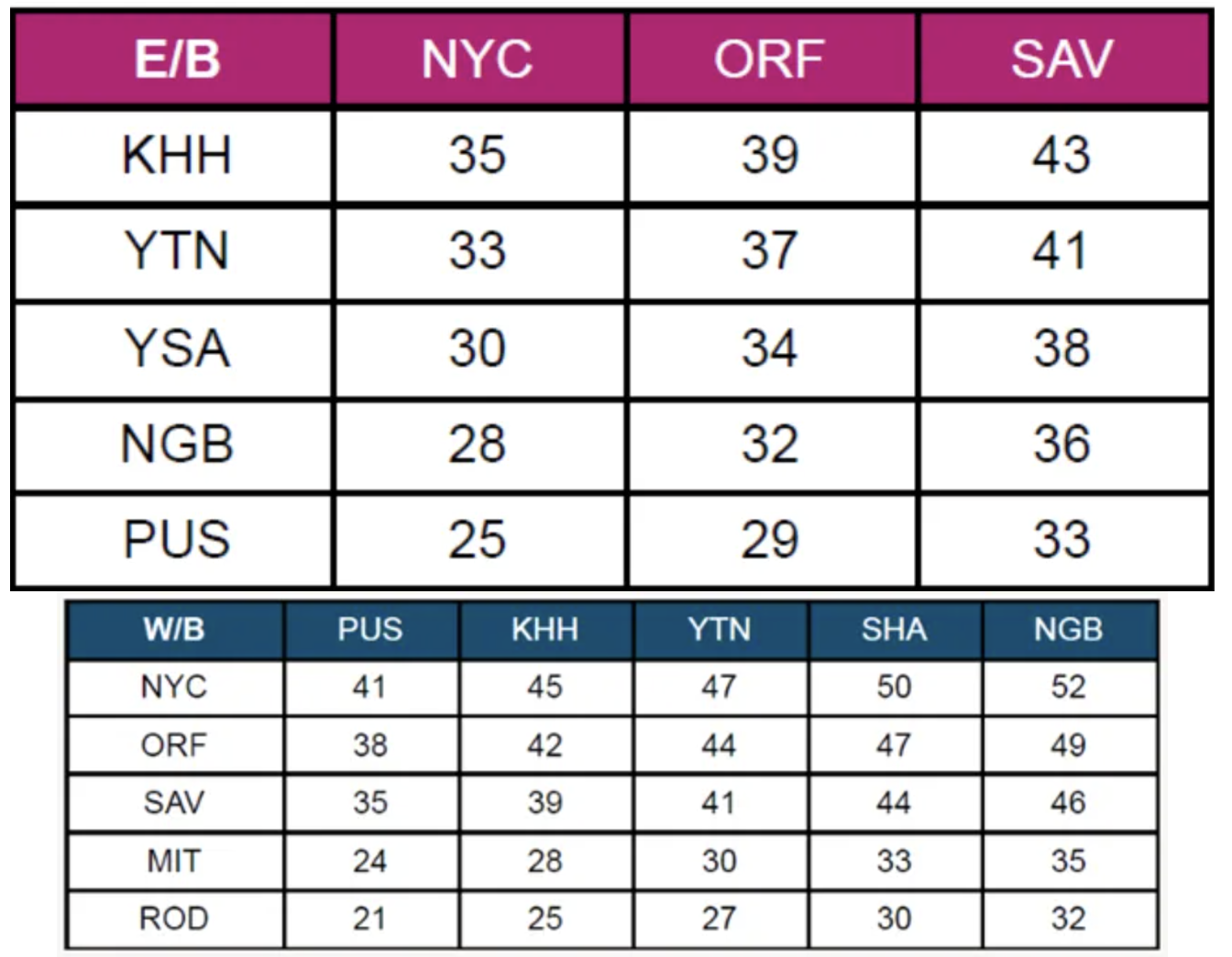 新挂靠港顺序:高雄-盐田-上海-宁波-釜山-(巴拿马)-纽约-诺福克-萨凡纳-曼萨尼约-(巴拿马)-罗德曼-釜山-高雄。
