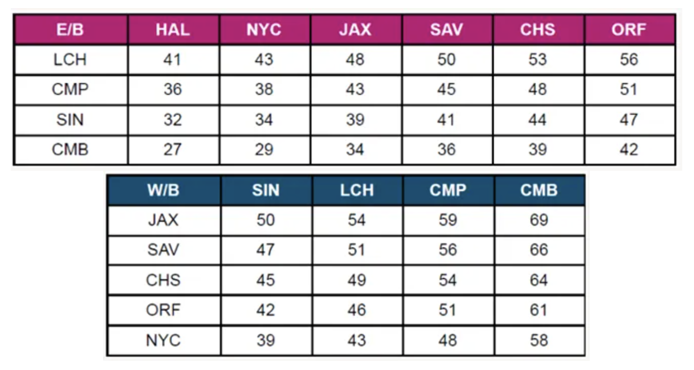西行方向:取消挂靠哈利法克斯港,哈利法克斯港进口货物可转至EC2航线进行运输。