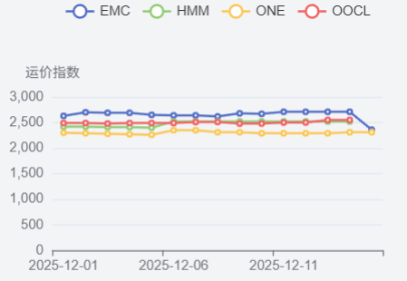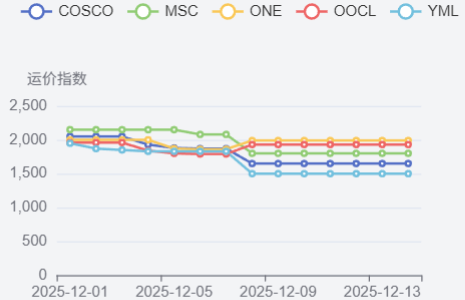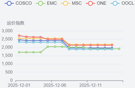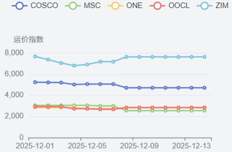 12月初因缺乏大额订单支撑,市场货量不足,船司降低运价吸引货源,后续船司可能推涨运价。