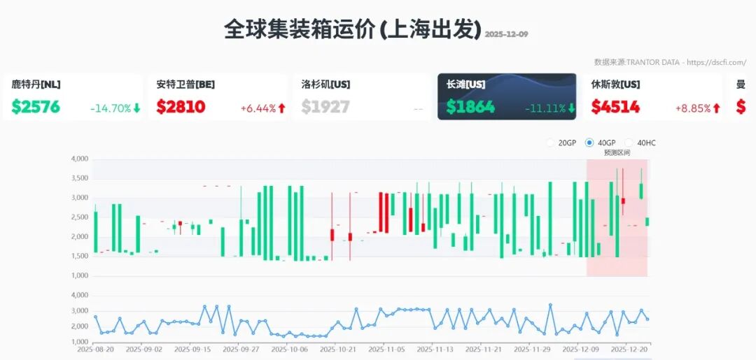 多家头部货代公司预测,美线若要迎来触底反弹,大概率需等到2025年12月下旬至 2026年春节前。