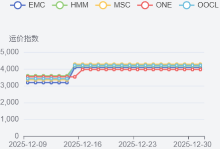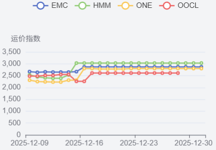 波斯湾航线运价继续稳定上涨。12月12日,上海港出口至波斯湾基本港市场运价(海运及海运附加费)为1881美元/TEU,较上期上涨5.6%。