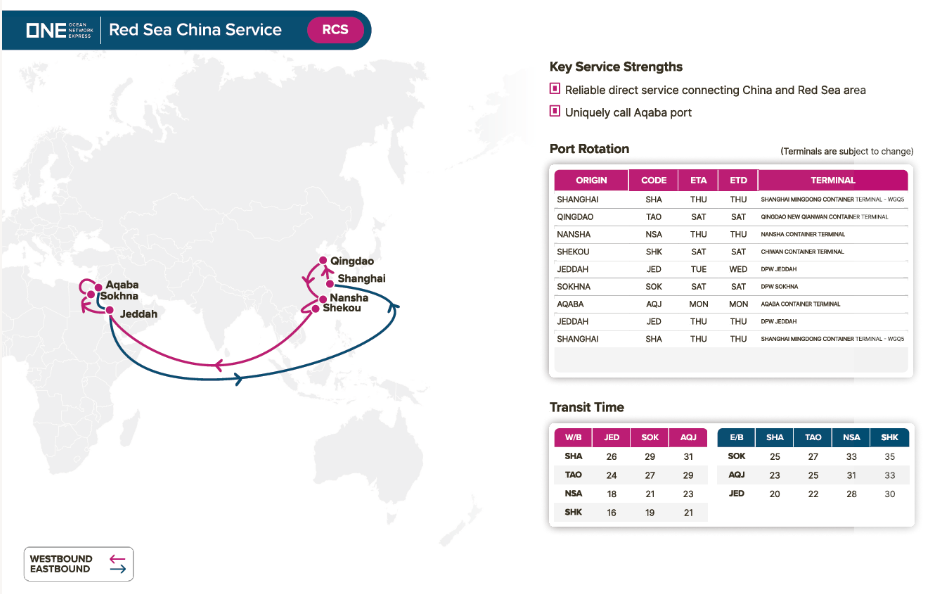 ONE全新推出红海-中国航线服务(RCS,Red-Sea China Service)即将上线,旨在加强中国与红海地区之间的运输联通性。