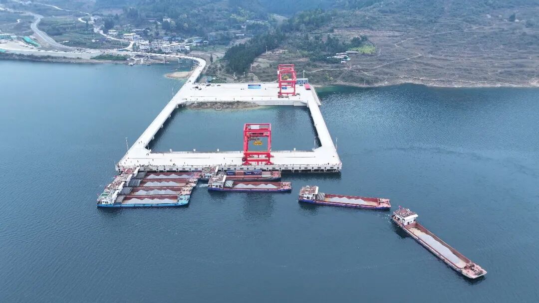 12月16日,随着汽笛长鸣,一台桥式起重机将装有沉淀硫酸钡的集装箱吊入“航电624”货船,这标志着贵州首个自动化码头——瓮安港云中港区正式开港。据港口圈(ID:gangkouquan)了解,该码头总投资约4.54亿元。
