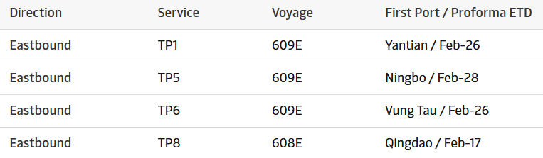 在远东亚洲至阿拉伯湾航线,马士基将取消以下航次: