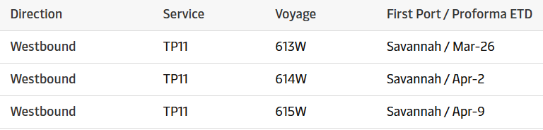 此外,连接远东亚洲与南美东海岸的“ASAS2”航线,也将空白航行。